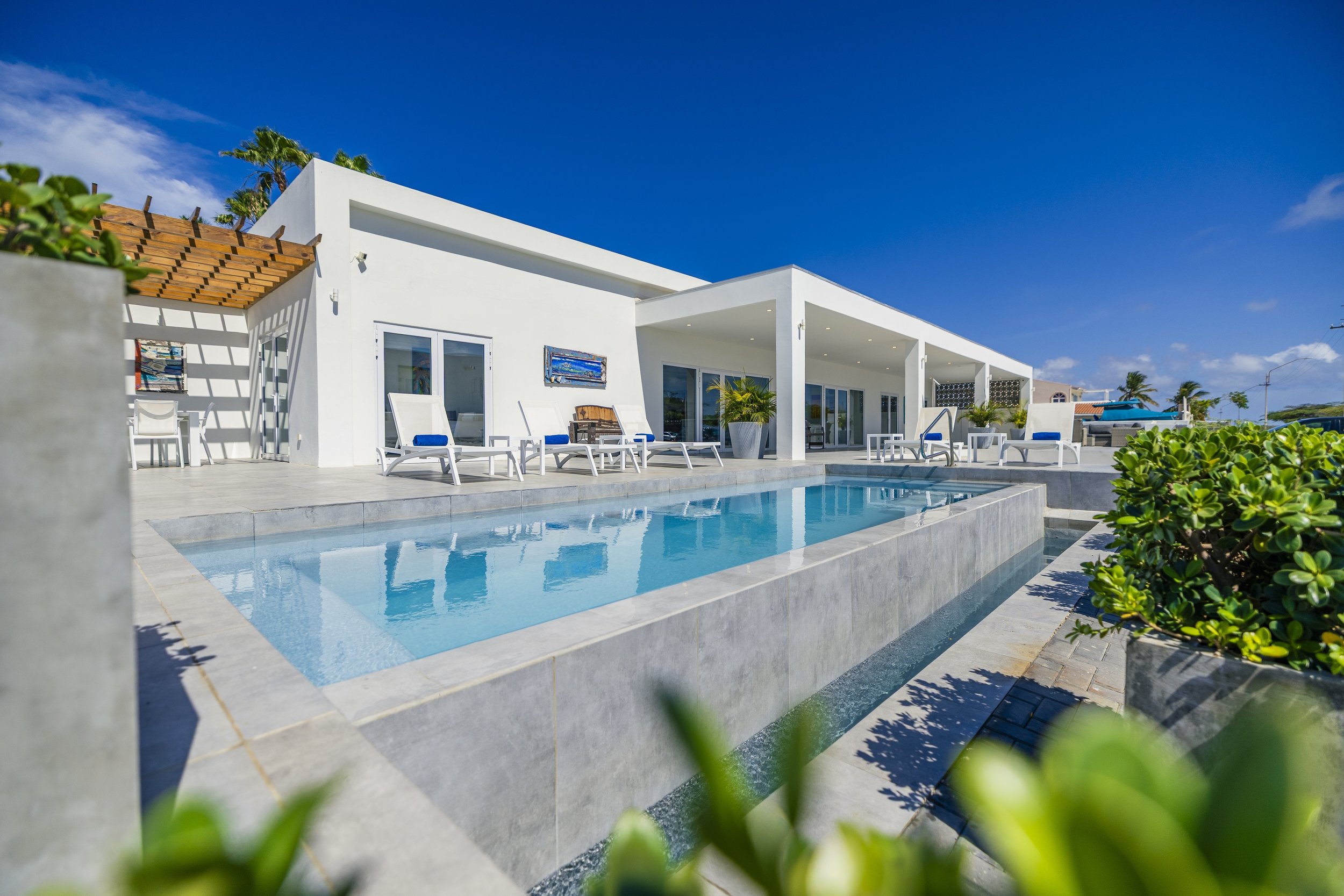 Experience a one-of-a-kind vacation home just steps from Boca Catalina Beach. Inspired by Aruban culture and designed for relaxation, our villa combines modern luxury with vibrant local art, two private pools, and breathtaking ocean views.